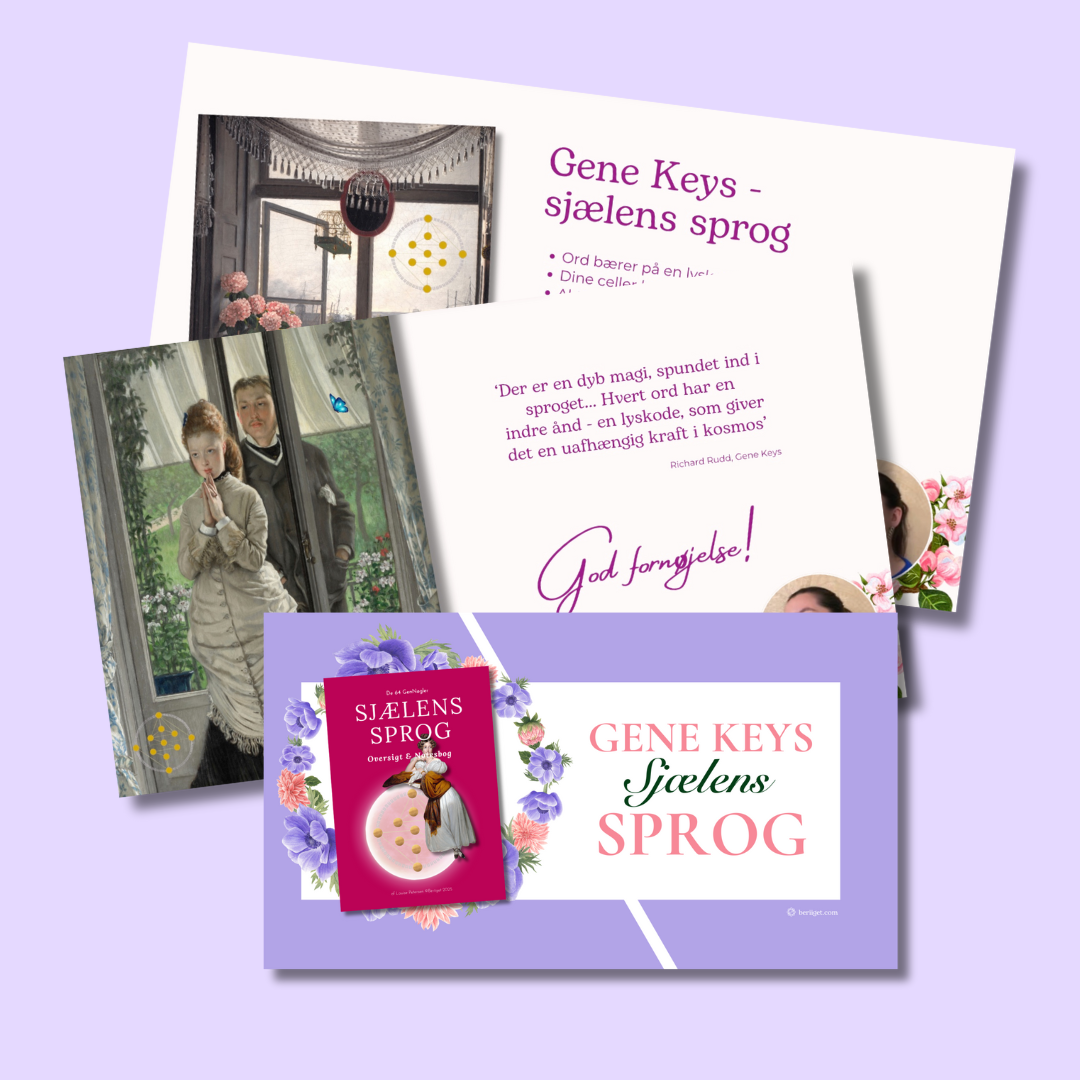 Med Sjælens Sprog får du de vigtigste elementer i de 64 GenNøgler udformet som en notesbog, så du kan skrive dine tanker ved hver af dine GenNøgler. Og! du får en intro-video med om hvordan GenNøglernes ord kan hæve frekvensen i dit energifelt.